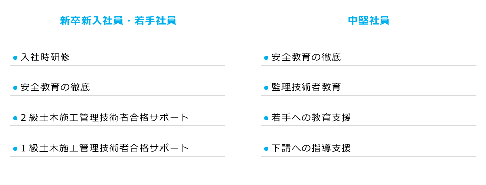 | 土木業界でプロとして仕事をしていくためには必須とも言える土木施工管理技術者資格。今井組への入社から、1級取得までの流れをご紹介します。 |